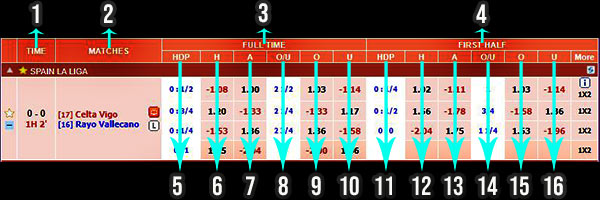 - FT HDP: Singkatan dari Full Time Handicap. Kolom ini berisi Voor Full-Time Handicap.
